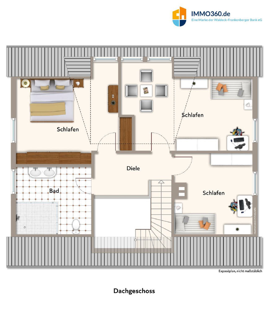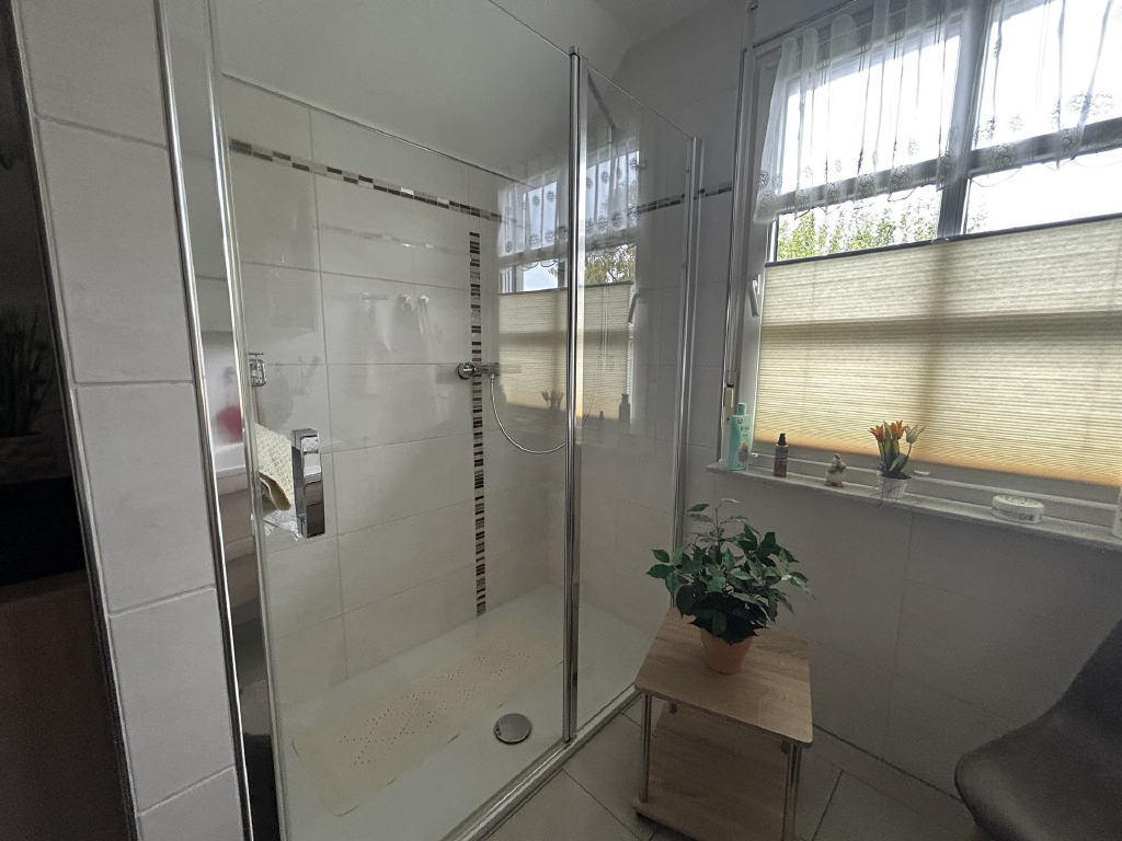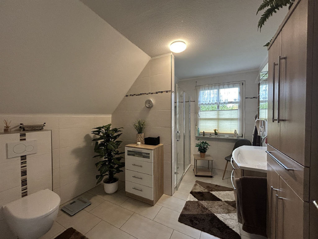 Im Dachgeschoss erwarten Sie ein großzügiges Schlafzimmer sowie zwei weitere, flexibel nutzbare Räume, perfekt als Kinderzimmer, Büro oder Gästezimmer. Das moderne Tageslichtbad ist mit einer großen Dusche ausgestattet.