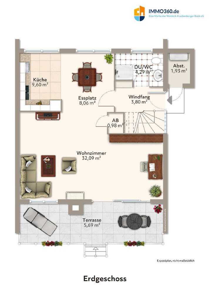 Das Haus steht auf einem rund 680 m² großen Grundstück mit Gartenhäuschen und bietet eine Wohnfläche von insgesamt etwa 98 m², die sich auf ca. 61 m² im Erdgeschoss und ca. 37 m² im Dachgeschoss verteilt.