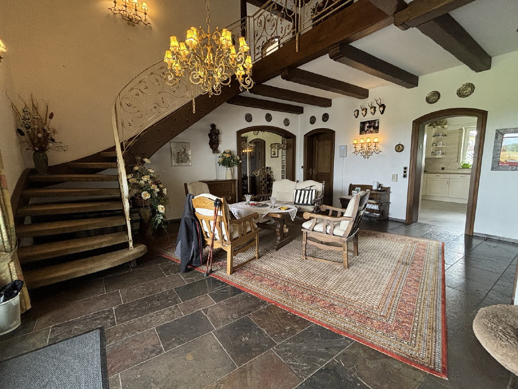 Willkommen in diesem einzigartigen Einfamilienhaus, das auf harmonische Weise rustikalen Charme mit modernem Luxus vereint. Dieses Juwel erstreckt sich verteilt auf zwei Etagen mit insgesamt 8 Zimmern und schafft ein einladendes Ambiente zum Wohlfühlen.