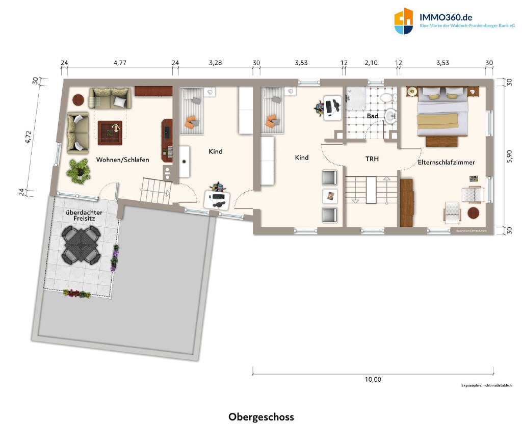 Das Obergeschoss bietet reichlich Platz für die Familie. Neben dem großzügigen Elternschlafzimmer stehen Ihnen drei Kinderzimmer zur Verfügung, die individuell als Schlaf-, Spiel- oder Hobbyräume genutzt werden können. Ein gepflegtes Badezimmer mit Dusche und WC sorgt für zusätzlichen Komfort. Ein besonderes Highlight ist der Zugang zur großen, teilweise überdachten Dachterrasse perfekt für Sonnenstunden, gemütliche Abende oder zum Entspannen im Freien.