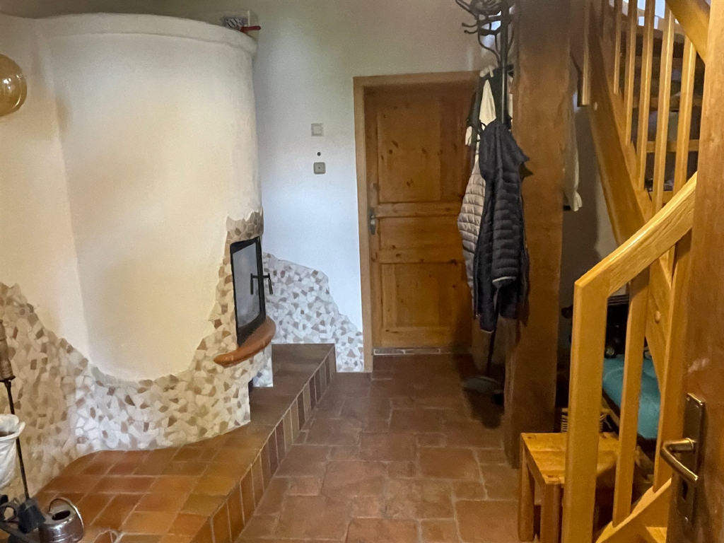 Weiterhin stehen Ihnen ein Esszimmer sowie ein Wohnzimmer, ebenfalls mit Terrassenzugang, zur Verfügung. Ein Badezimmer sowie ein traditioneller Grundofen, der eine wohlige Wärme im gesamten Haus erzeugt, runden das Raumangebot auf dieser Ebene ab.