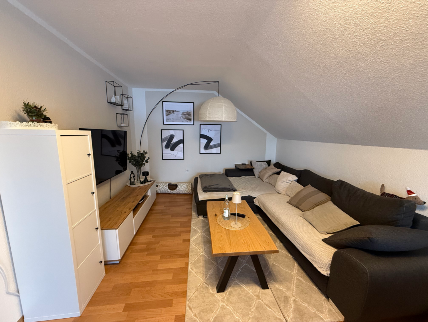 Schöne 2-Zimmer-Wohnung im Dachgeschoss mit ca. 61 m² Wohnfläche. Die Wohnung verfügt über ein Wohnzimmer, Schlafzimmer, und Bad.