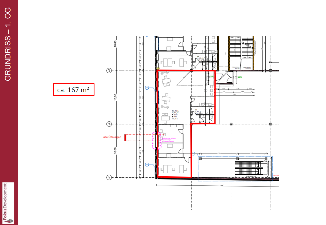 Die Fläche eignet sich ideal für Unternehmen, Dienstleister, Kanzleien, Praxen oder andere gewerbliche Nutzungen mit Publikumsverkehr.